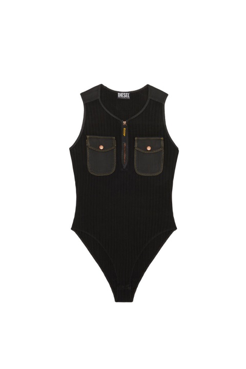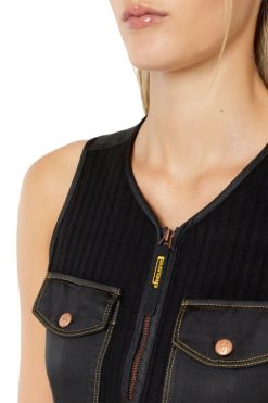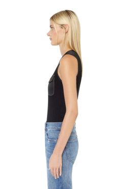 בגד גוף לנשים זה, סרוג בצלעות מוויסקוזה מתיחה כבדת משקל, מרגיש רך ונוזל. צללית הטנק בעל קו צוואר רוכסן לכיסוי מתכוונן ומגע של סאטן בכיסים ובעול האחורי.