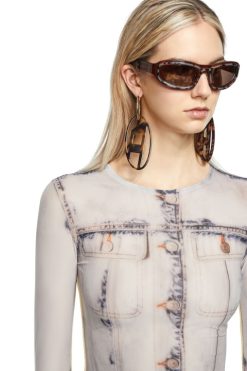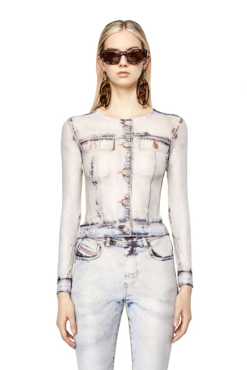 החלק העליון עם השרוול הארוך הזה נחתך מג’רזי מתיחה איטלקי להתאמה לעור שני. הדפס ה-trompe L’oeil שלו מחקה את המראה של נהג משאית ג’ינס עם שטיפת שיש מולבן בארכיון.