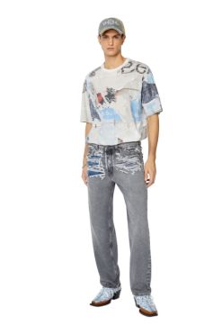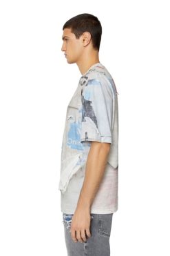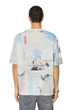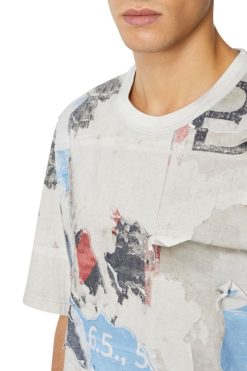 חולצת טי כותנה בגזרה רגועה מקולקציית סתיו/חורף 2022 Runway Show. הסגנון מאופיין באפקטים ייחודיים של פילינג בעבודת יד, המתקבלים בשילוב שתי שכבות של הדפסים דיגיטליים וטכניקות שחיקה.