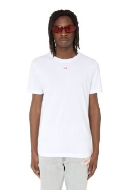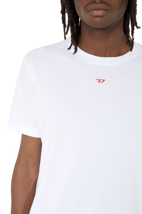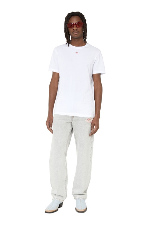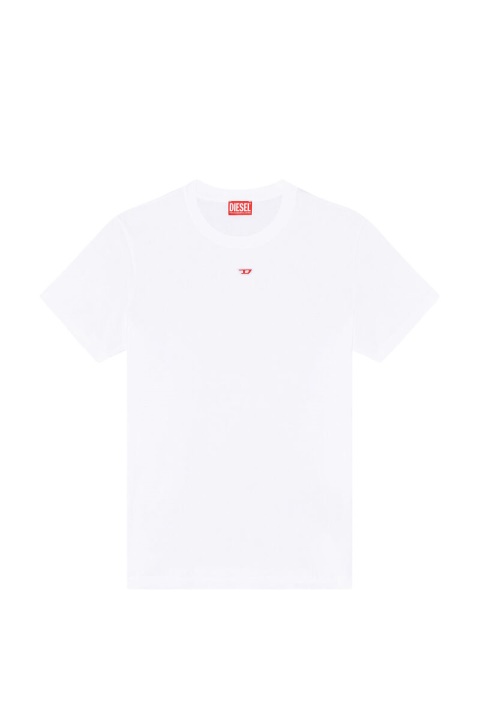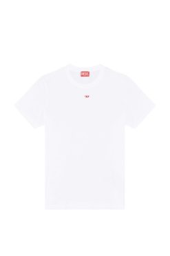 חולצת טריקו ג’רסי מכותנה בגזרה דקיקה בעיצוב נקי, מכשירת טלאי לוגו אדום קטן במרכז החזה.