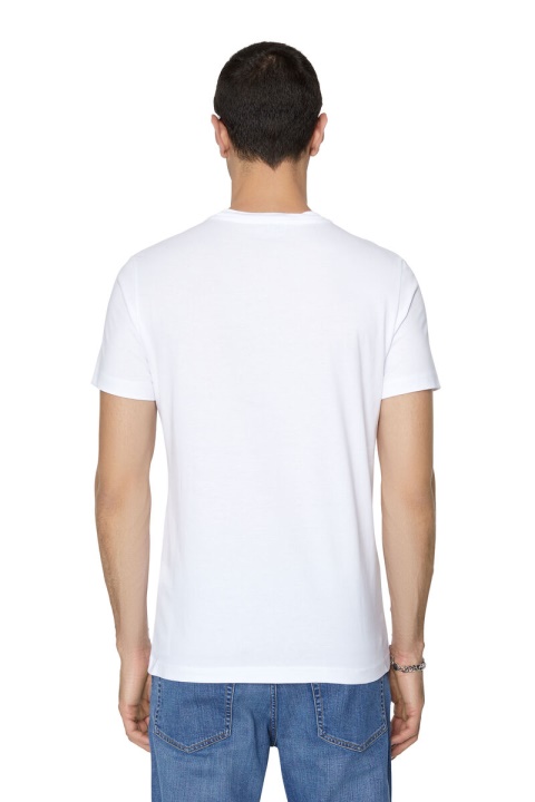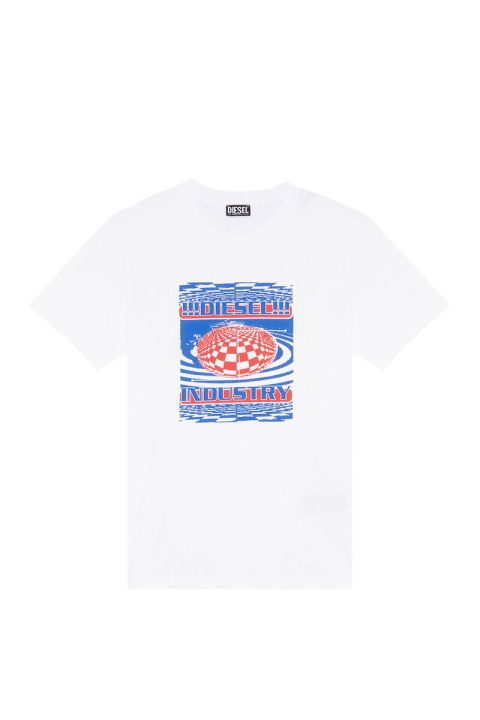 חולצת טריקו לגברים בגזרה דקיקה זו עשויה מג’רזי כותנה אורגנית. החזה מציג הדפס פסיכדלי של תעשייתי.