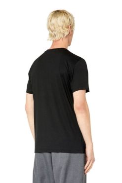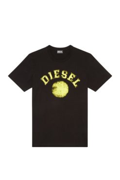 חולצת טי לגברים בג’רזי כותנה אורגני, בעלות עיגול מודפס ומיתוג דיזל. סגנון זה נחתך להתאמה דקה.