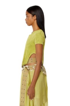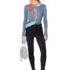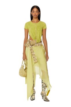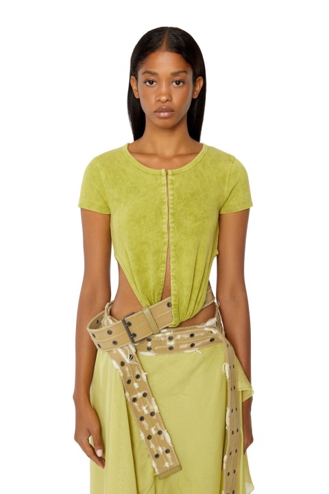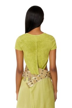 חולצת FW22 Runway Show זו לנשים בגזרה דקיקה גזרה מכותנה מתיחה מטופלת. הוא כולל דפנות גבוהות וחגורת קנבס נוסח צבאי המתחברת דרך החרכים הקדמיים והאחוריים. סיים עם סגירת וו וטלאי ד רקום תלת מימד מאחור.