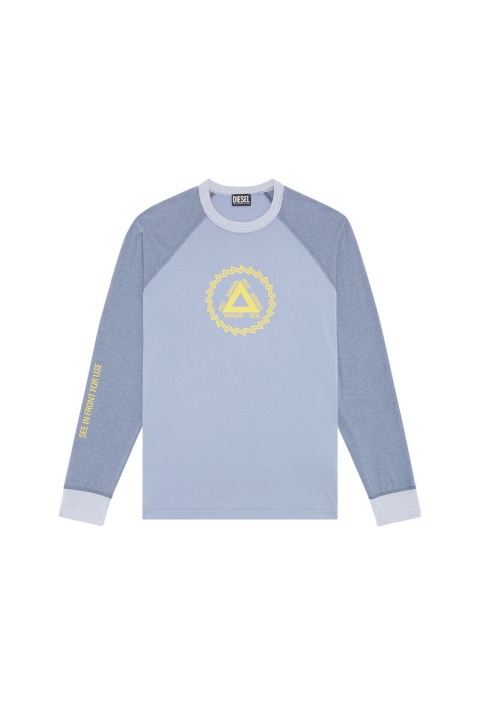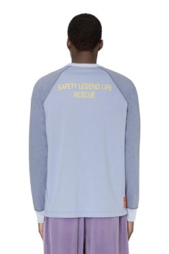 גזרת חולצת טריקו לגברים עם שרוולים ארוכים להתאמה רגילה. הראגלאן הזה נוצר על ידי שילוב של לוחות מלנג’ לולחות כותנה-ג’רזי רגילים שצבועים יתר על המידה כדי ליצור חסימת צבע גווני. גימור עם הדפסה בטיחות דיזל ולוגו נוסח דבק.