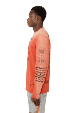 חולצת גברים זו עם שרוולים ארוכים עשויה מג’רזי כותנה, מטופלת בכתפיים ובשרוולים למראה דהוי שמש. צללית ההתאמה הרגילה שלו מותג עם הדפסה נפיחות בחזית, מאחור ובשרוולים.