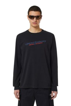 חולצת טי עם שרוולים ארוכים בגזרת כותנה ג’רזי בהתאמה רגילה. צבוע בפיגמנט למראה וינטג’, סגנון זה ממותג עם הדפסה פחזניות ‘Disel Industry Denim Division’ על החזה.