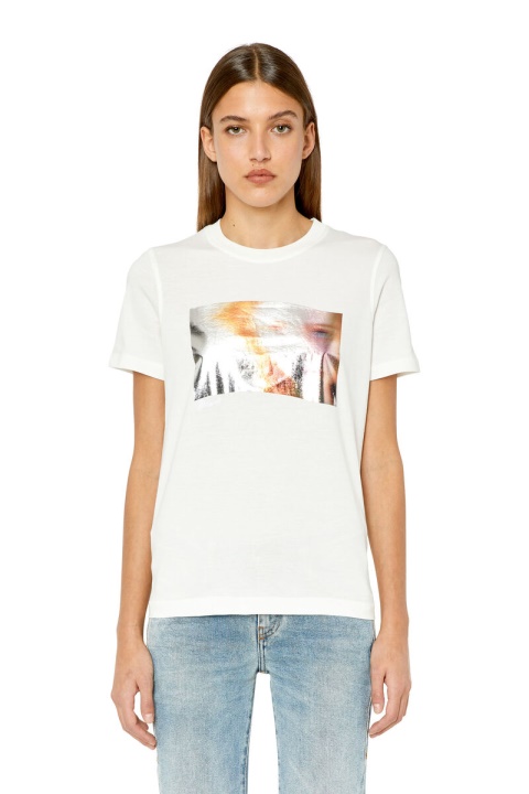פניה המטושטשות של אישה המודפסות על נייר כסף מגדירים את החולצה הגרפית הזו. הוא עשוי מכותנה להתאמה רגילה ומסיים עם לוגו תסריט רקום.
