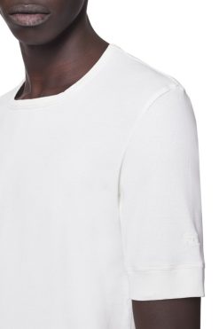 חולצת טריקו מכותנה נמתחת עם צלעות, בגזרה דקיקה וצוואר מרובע בעדינות. לוגו ד רקום בגווני מקשט את השרוול השמאלי.