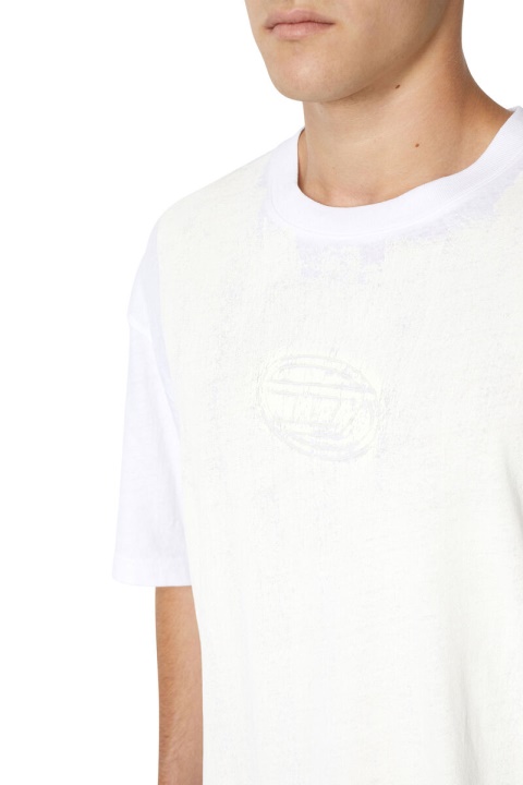 חולצת טי אוברסייז לגברים עשויה כותנה ג’רזי במראה וינטג’. החלק הקדמי מוטבע עם סמל D אליפסה מוגבה על החזה ומוטבע בגוון טונאלי.