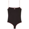 חוטיני נשים בגזרת רגליים גבוהות מכותנה רכה למתיחה. מודגש עם תפרים ודיים ופס תואם לאורך חגורת המותן, הוא כולל טלאי ד רקום בחזית המסתובב מחוט ממוחזר.