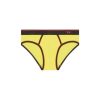 תחתוני בוקסר מכותנה מתיחה לגברים. הכריכה מוקפת בצנרת ניגודית, בעוד שחגורת המותן מתהדרת בתיקון ד רקום מחוט ממוחזר.