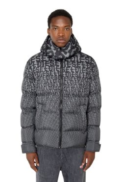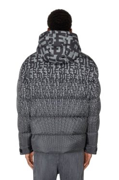 ז’קט פאפר במעטפת קפיטאזונ’ מרופדת, מודפס על כל הפנים עם דוגמת מונוגרמה מתכווצת. מתכוונן בחפתות, לסגנון התאמה רגילה וקפוצ’ון ניתן להסרה. השרוול מפורט עם התיקון ‘סגלגל D’.