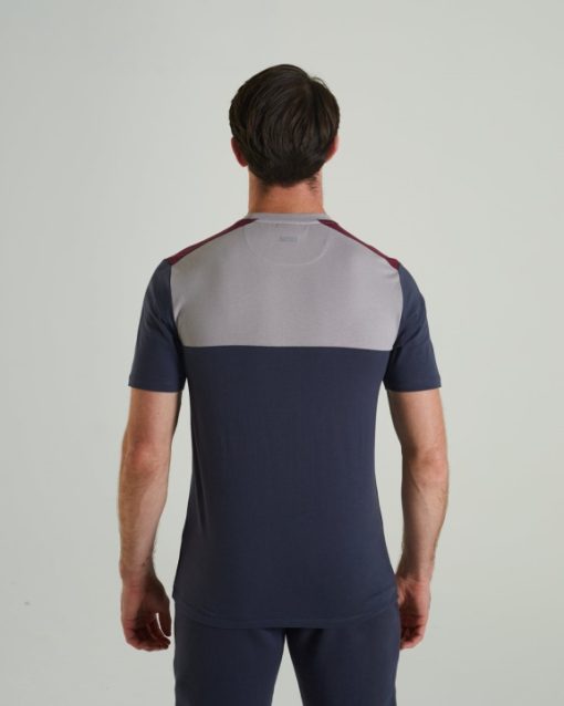 טי כותנה רכה לגברים בעיצוב קולור בלוק, הדפסה ג’ל בחזה ולוגו DIESEL רפלקטיבי בצוואר האחורי. הדוגמנית לובשת מ.