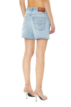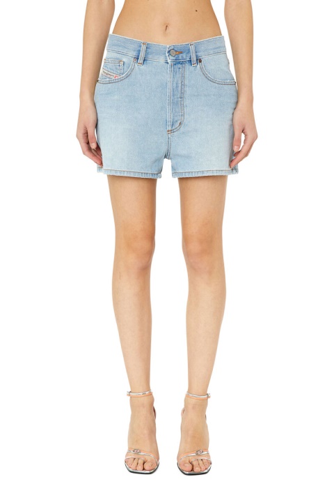 מכנסי חמישה כיסים קצרים לנשים עם גזרה נינוחה עם מפשעה מעט נשמטת. הם מתגוררים קבוע.