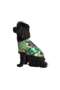 מעיל כלבים זה עשוי מבד זיעה. הוא כולל דפוס הסוואה כולל, מועשר בגרפיקה ורקמה בהשראה צבאית וינטג’.