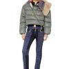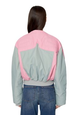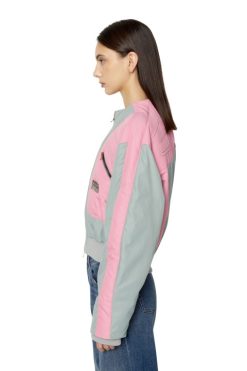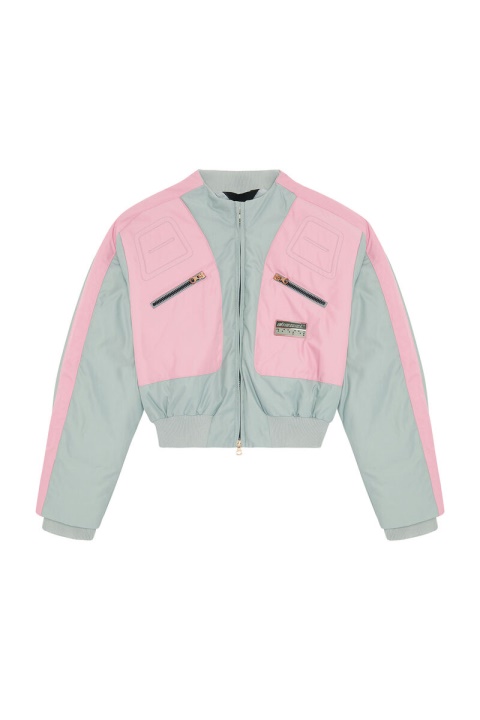 חלק מקולקציית סתיו 22 Runway Show, מעיל פוך לנשים זה עשוי מתערובת כותנה-ניילון. צללית הפצצה כוללת פרטים בהשראת וינטג’ מארכיון דיזל. לוחות מנוגדים יוצרים אפקט של בלוק צבע.
