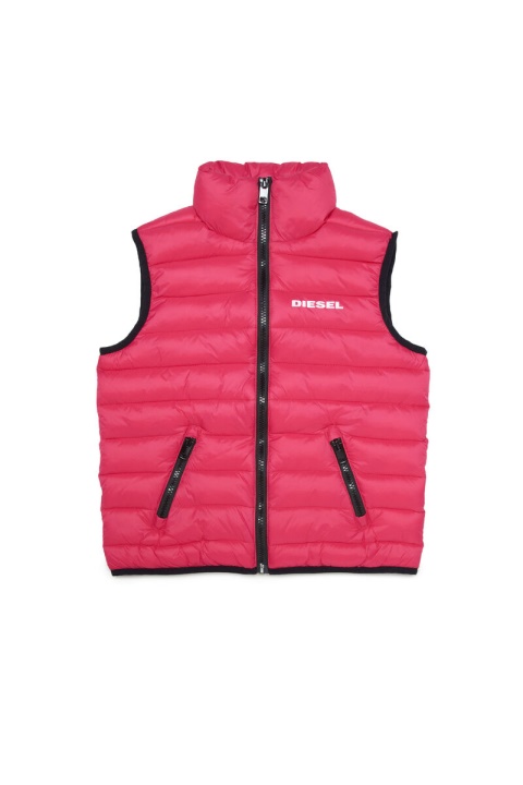 גופיה מרופדת לילדים במעטפת מרופד, מעוצבת עם קו צוואר גבוה נפוח ודיפונים מנוגדים. הגב מודפס לאורך עמוד השדרה עם לוגו דיזל מודגש שגרסה קטנה יותר מעט את החזה.