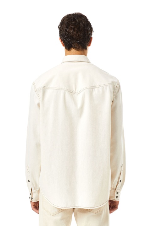 החולצה המערבית הרגילה הזו עשויה מג’ינס כותנה, היא מפורטת עם תפרים ניגודיים ולוגו D רקום אדום.