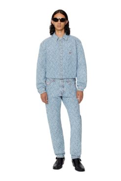חולצה בסגנון בגדי עבודה עם גזרה קופסת ושסעים בצדדים. שלם עם תפרים ניגודיים ולוגו D רקום אדום.