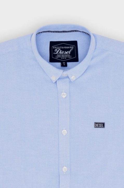 חולצת קיץ עם שרוולים קצרים מכותנה דיזל בנים. עיצוב צווארון מכופתרת עם תגי לוגו על החזה והשולי
