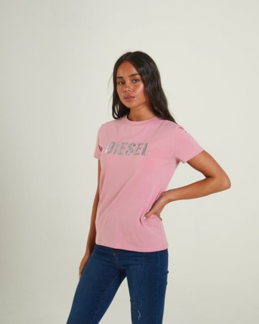 חולצת טריקו מכותנה עם מתיחה קלה. יש לוגו של דיזל נצנצים על החזה.