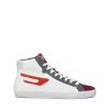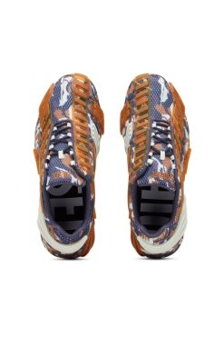 רענן עם מוטיב הסוואה, נעלי ספורט חדשניות לגברים עשויות מרשת עם מערכת שרוכים מחוץ למרכז. שכבות גומי יצוקות מוסיפות מרקם שמנמן ועוטפות את הנעל, והופכות לחלק מהסוליה התעשייתית הייחודית.