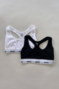 ברלט 2 חבילות בהשראת ספורט עם לוגו ה-Disel הייחודי שלנו על הרצועה האלסטית התומכת. ברלט זה אינו כולל כוסות, ללא ריפוד והוא עיצוב גב רייסר. הדוגמנית לובשת מידה S ואנומליצים להתמיד ביד החזייה הרגילה שלך. 90% כותנה, 10% אלסטן.