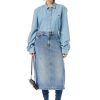 חצאית מינית מותניים נמוכים ופרט הכיס החמישי האייקוני. ה-fix דנים מציג גוון כחול בינוני נקי ושטוף. הוא מטופל עם תוף שוחק מיוחד ומועשר באפקט שרף.