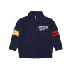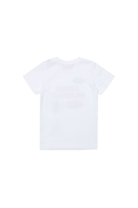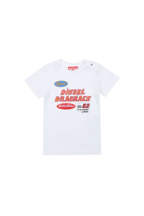 חולצת טריקו לבנה מכותנה לבנים מעוטרת בשילוב של גרפיקת לוגו בהשראת מירוצים. כפתורי הצמד בכתף מבטיחים קלות לבוש.