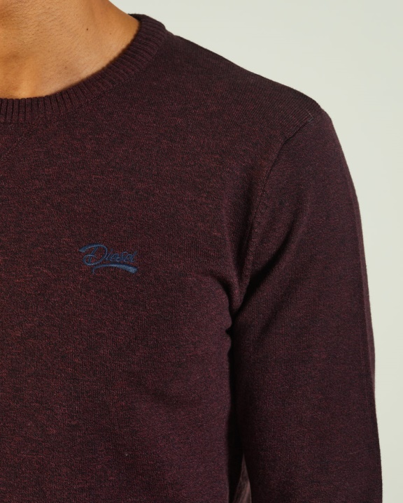 סוודר עם צווארון עגול בשילוב כותנה, רקמת לוגו דיזל, שולי צוואר צלעות וחפתים. הדוגמנית לובשת מ. מומלץ להקפיד על מידה רגילה. 45% אקריליק, 35% כותנה, 20% ניילון.