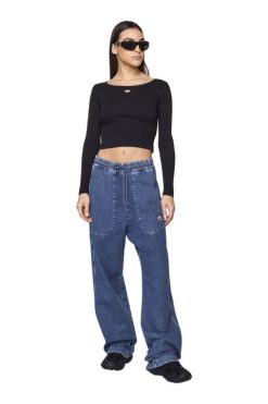 סגנון משוחרריד מותניים אלסטיות וחוט שרוך גווני. ג’ינס מסלול יוניסקס זה מפורט עם כיסים קדמיים גדולים, כיס רצועה בודדת מאחור ולוגו “D” וינטג’. זוג כחול-בינוני זה עבר שטיפת אבן ומטופל קלות. בגד זה יוצר באחריות. השתמשו בטכניקות חדשניות של שותפינו הגבלנו את השימוש במים וכימיקלים מייצור בדים לכביסה וטיפולים, מה שהופך אותו לג’ינס מכבד עם דיזל DNA.