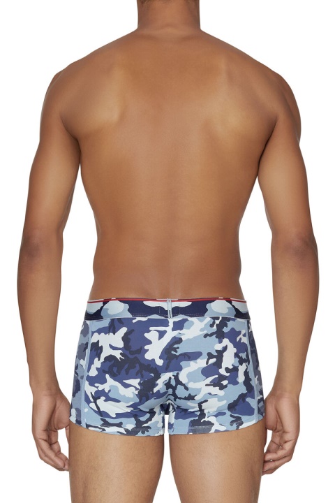 תחתוני בוקסר מכותנה נמתחת לגברים, עם הדפסת הסוואה על כל הקצה. חגורת הג’קארד כולל לוגו דיזל ג’ינס דיוויז’ן ופס אדום.