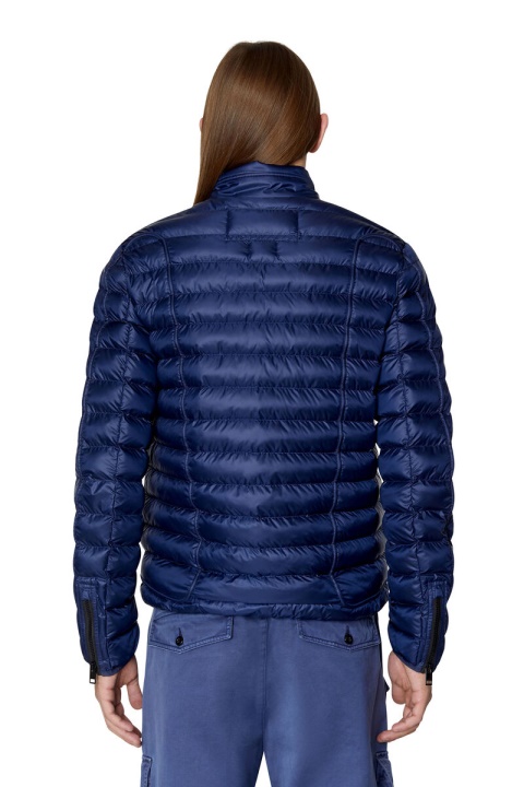 גזרה להתאמה רגילה, ז’קט קווילט לגברים זה בעל צווארון דק דק, חפתים רוכסנים וצנרת המהנהנת לצללית האופנוענים הנקייה של רוכבי בתי קפה. הפתצונית הקלה Thinsulate מעט החירום שניהם מחומרים ממוחזרים.