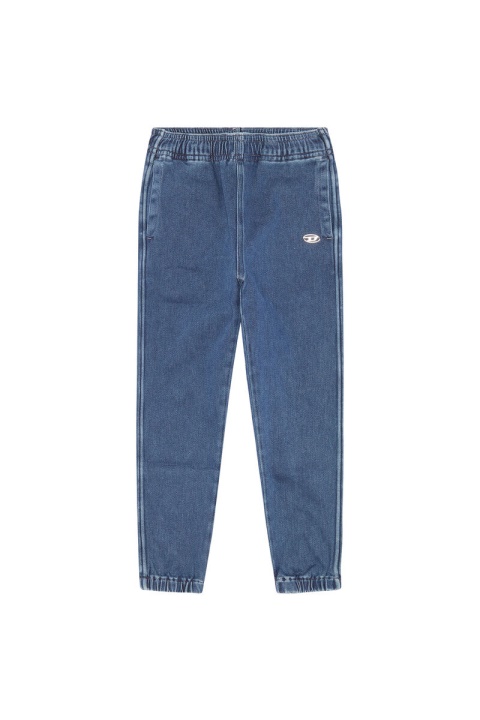בגוון כחול כהה, מכנסי הבנים הללו משלבים את הנוחות של מכנסי טרנינג עם מראה של ג’ינס. יש להם מותניים וקרסוליים אלסטיים, ולוגו מתכת ‘סגלגל D’ בחזית.