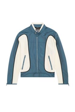 מעיל אופנוע בהתאמה רגילה בניילון חזק ודוחה מים. דגם זה של אופנוען ארכיוני משנות ה-90, כולל חסימה בצבעים עזים ובטנת רשת. החלק האחורי מפורט עם לוגו ד אובלי.