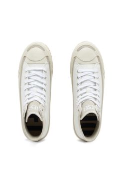 נעלי ספורט מעור זה כוללות כובע אצבע שכבות וסוליה פלטה מגופרת, מעודכנת עם משטח מסטיק משופע ולוגו D מובלט. החלק העליון הגבוה שלו כולל שכבות זמש, עיניות לוגו ותוספת ‘דיזל ג’ינס דיוויז’ן’.