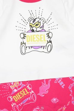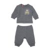 סרבל כותנה מתיחה זה מעוצב כך שיראה כמו חולצת טריקו עם שרוולים ארוכים ומכנסיים. החלק העליון הפשוט מתהדר בהדפסה לו דוב, בעוד שהחלק התחתון מעוטר בגרפיקה צבעונית.