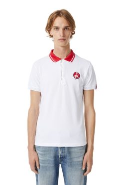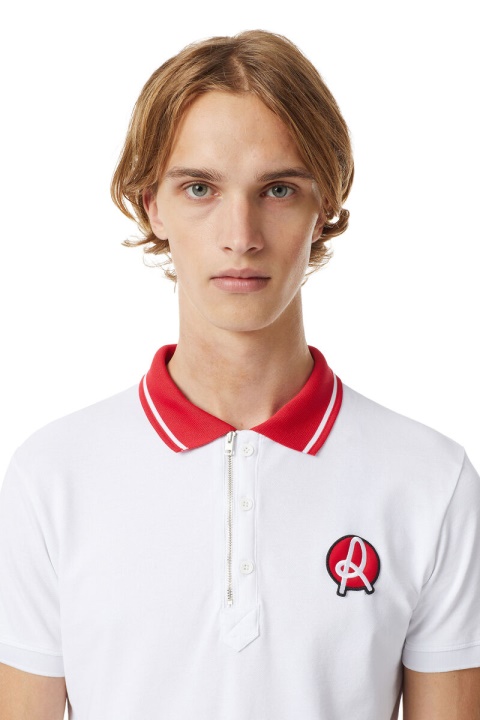 חלק מהדיזל X L.R. קולקציית קפסולות ויצ’נזה, חולצת פולו מכותנה זו מאופיינת בצווארון כפתורים ורוכסן. התיקון האדום של Lanerossi Vicenza מקשט את החלק הקדמי.