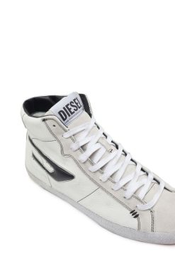 נעלי ספורט גבוהות מעור זו מעודכנת עם מיתוג D מוגבה והדגשי זמש גווניים. גם סוליית הגומי העליונה וגם סוליית הגומי המגופרת כולל טיפול מלוכלך למראה כחול. סיום עם פרט תפר משולש על עמוד העין.