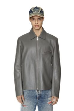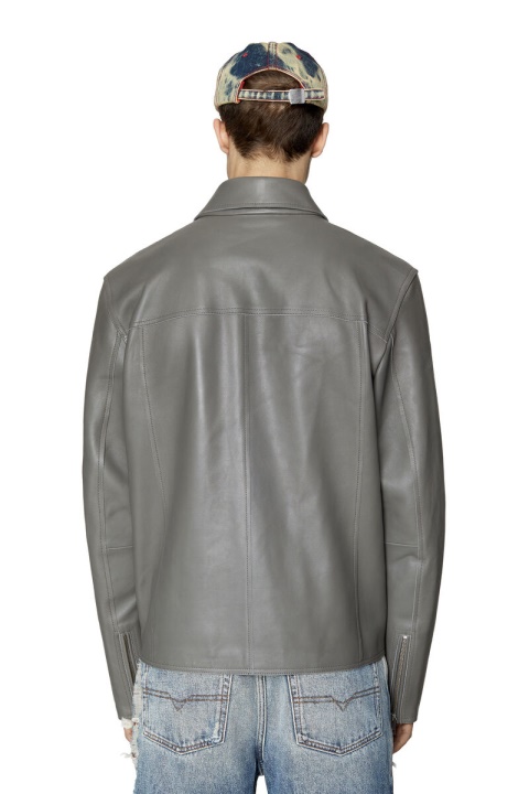 מעיל אופנוענים לגברים עשוי חלק וגמיש. מעוצבת להתאמה רגילה, גרסה לא מרופדת זו כוללת צווארון חולצה ופירוט מינימלי.