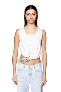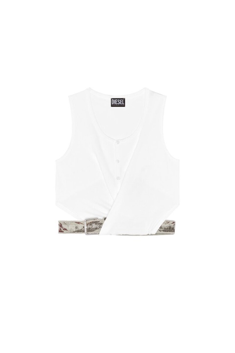החלק העליון הדק הזה עם צלעות נמתח מתהדר בחגורת קנבס מטופלת עם הדפסת קמו, היוצרת אפקט עטוף עם צדדים חתוכים. בגד צבוע וכביס למראה בלוי, הוא מפורט עם לוח ‘D’ בגב.