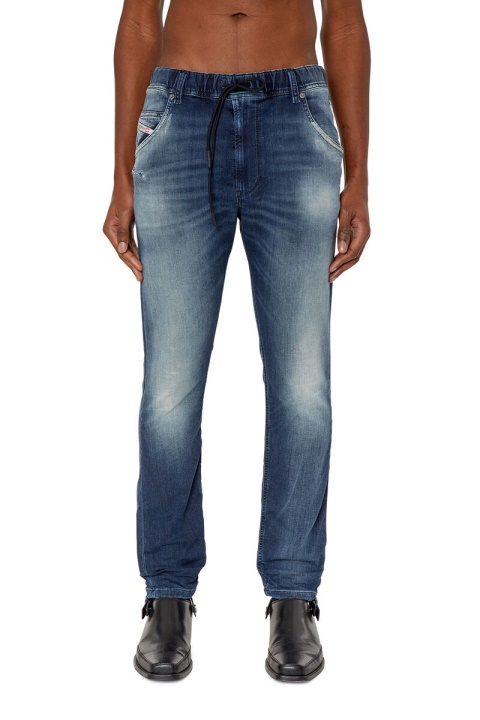 סגנון מחודד מעוצב ב-JoggJeans לנוחות מירבית. הרגל המעוצבת מצטמצמת לקרסול, וחגורת המותן כולל שרוך. כביסה כחולה כהה זו מעבירה מראה חי דרך אפקטים משומשים מעודנים.