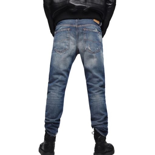- בד התיקון הכחול-כהה מטופל בעבודת יד עם פרטים קרועים ומתוקנים