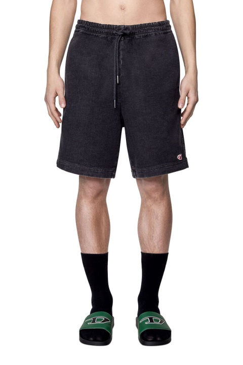 מכנסיים קצרים מעוצבים מ-Track Denim לנוחות מירבית. לסגנון זה יש התאמה רופפת ורצועת שרוך אלסטית. מפורט עם תיקון לוגו ד אובלי. לכביסה זו גוון אפור כהה אחיד, עם אפקטים משומשים מעט בתפרים.