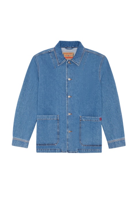ז’קט בגדי עבודה בכושר קופתי. עיצוב לשני המינים, עשוי מג’ינס עם כיסי תיקון גדולים בחזית ובגב. כביסה כחולה בינונית חיונית זו עשויה מבד פיקס ומטופלת עם תוף שוחקים מיוחד. מראה הוינטג’ מודגש עם שפם ואפקטים ניואנסים.