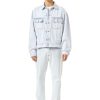 ז’קט ג’ינס של משאית ג’ינס. הסגנון חתוך להתאמה רגילה ומקושט בעדינות בלוגו D רקום אדום. כביסה כחולה בינונית חיונית זו עשויה מבד פיקס ומטופלת עם תוף שוחקים מיוחד. מראה הוינטג’ מודגש עם שפם ואפקטים ניואנסים.