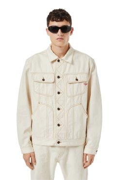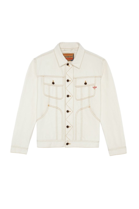 מעיל משאית. עיצוב יוניקס זה, חתוך להתאמה רגילה, כולל מבנה כיס מעוקל בהשראת ארכיון דיזל. סיום עם תפרים ניגודיים ורקמת לוגו ד אדום. מעוצב מכותנה אורגני, ג’ינס מתקן זה מציג כביסה לבנה מטופלת בעדינות.