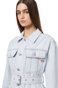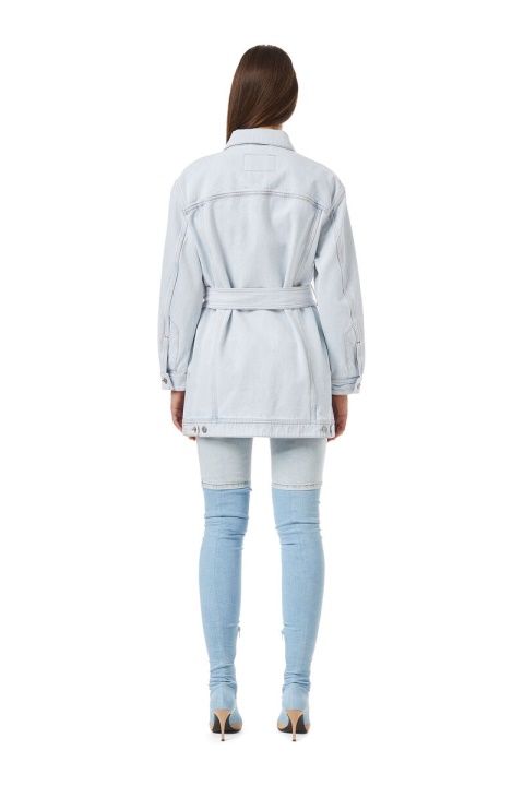 מעיל משאית. סגנון חגורה זה מעוטר בלוגו D רקום ומבנה כיס מעוקל מארכיון דיזל. כביסה זו מעוצבת מג’ינס קבועה ובהתאמת גוון כחול בהיר במראה מולבן.