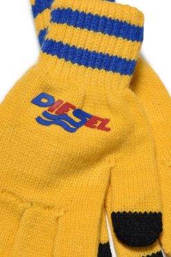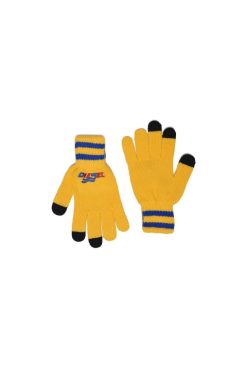 כפפות הבנים האלה סרוגות מחוט אקרילי, ממותגות עם לוגו גלי של דיזל. מוגבה עם שלושה קצות מסך מגע וחפתים עם פסים.