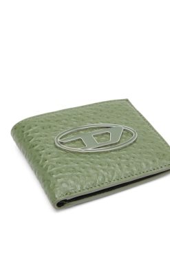 ארנק דו-קיפול לגברים זה מכיל פתקים, כרטיסים וקבלות. הוא עשוי מעור המוטבע במרקם בועות מגורען ומסתיים עם חומרה ‘אובלי ד’ מצופה אמייל.